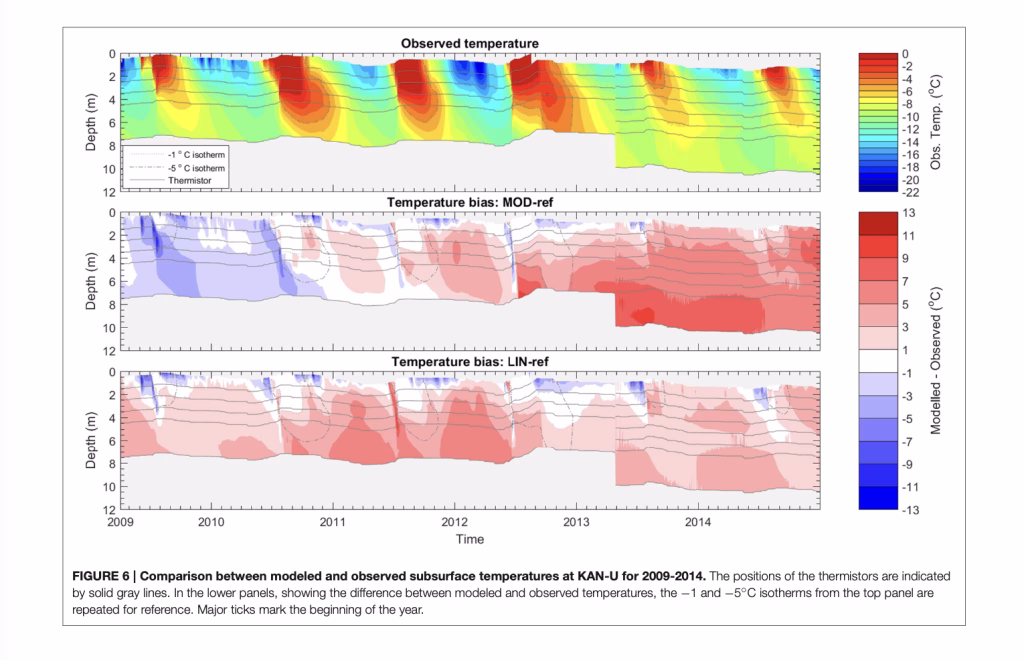 Interpretazione della Figura 6: temperature subsuperficiali a KAN-U (2009–2014) e bias dei modelli