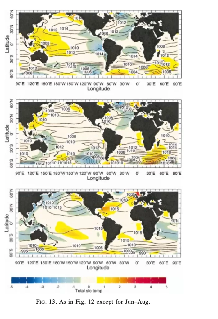 Analisi approfondita della Figura 13: Dinamiche della pressione a livello del mare e dell’asimmetria della temperatura superficiale del mare durante l’estate boreale